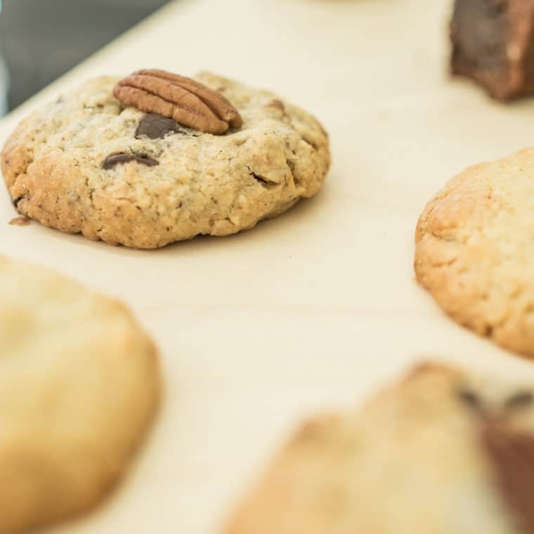 Assortment of crunchy speculoo's, homemade milk chocolate, marshmallow, marzipan, praline bear, chocolate coins, candy cane, chocolate marshmallow.